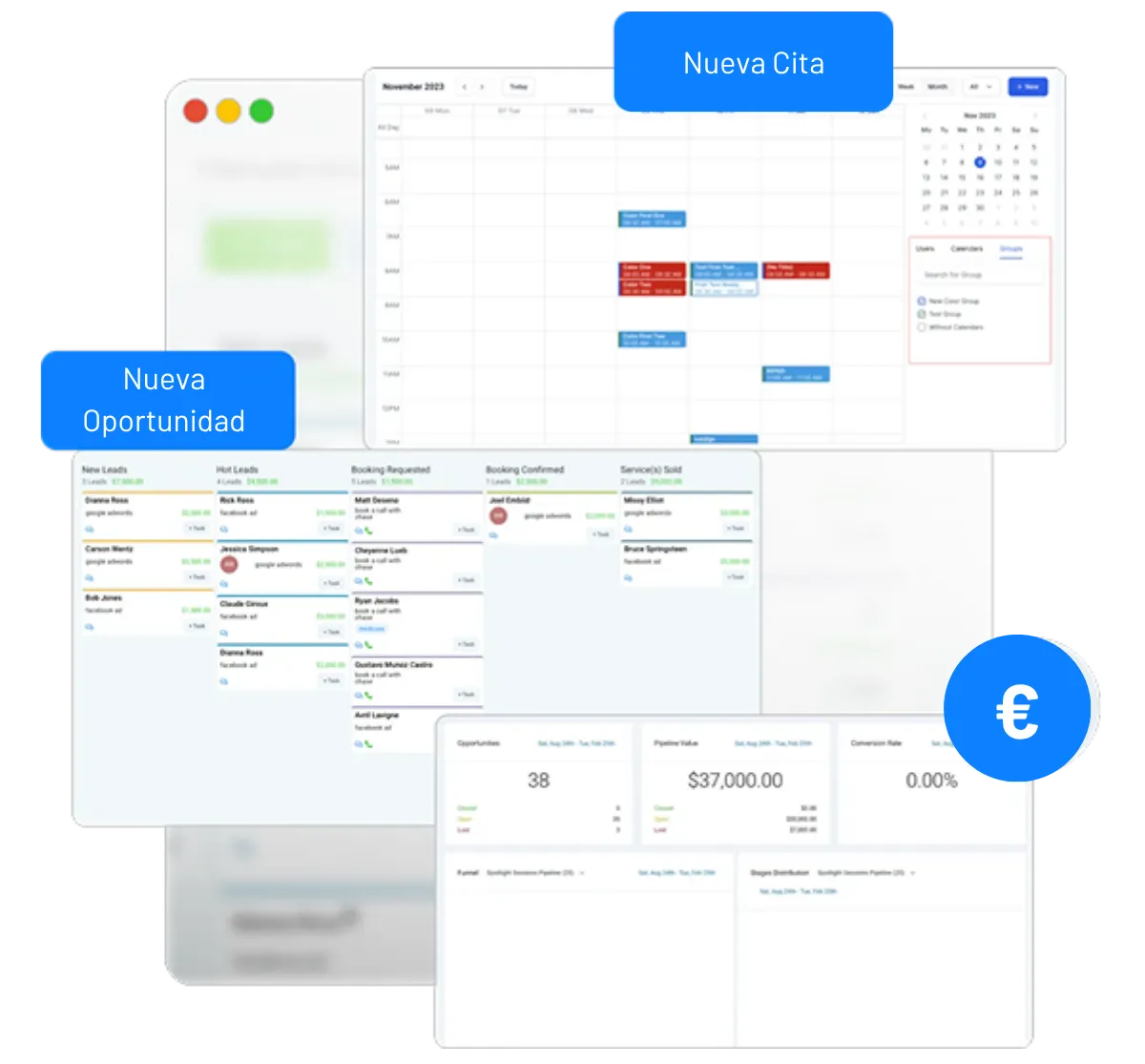 Nos integramos directamente con Stripe para que puedas cobrar pagos en sitios web, embudos e incluso cuando alguien reserva una cita.